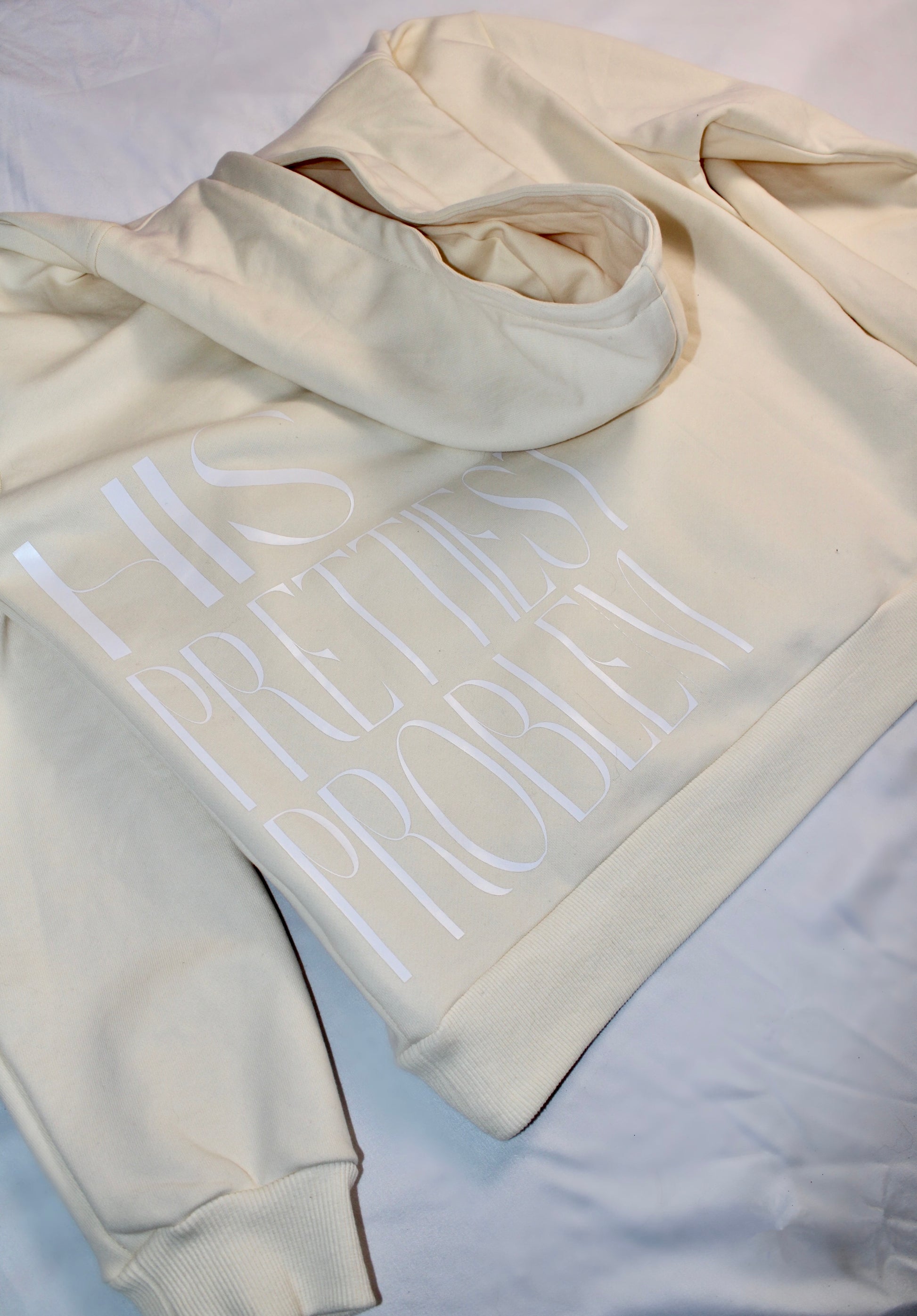 Creme hoodie with a wide hood and fitted cuffs. Perfect for casual wear or lounge wear. Comes in a gorgeous lavender blue colour too.
